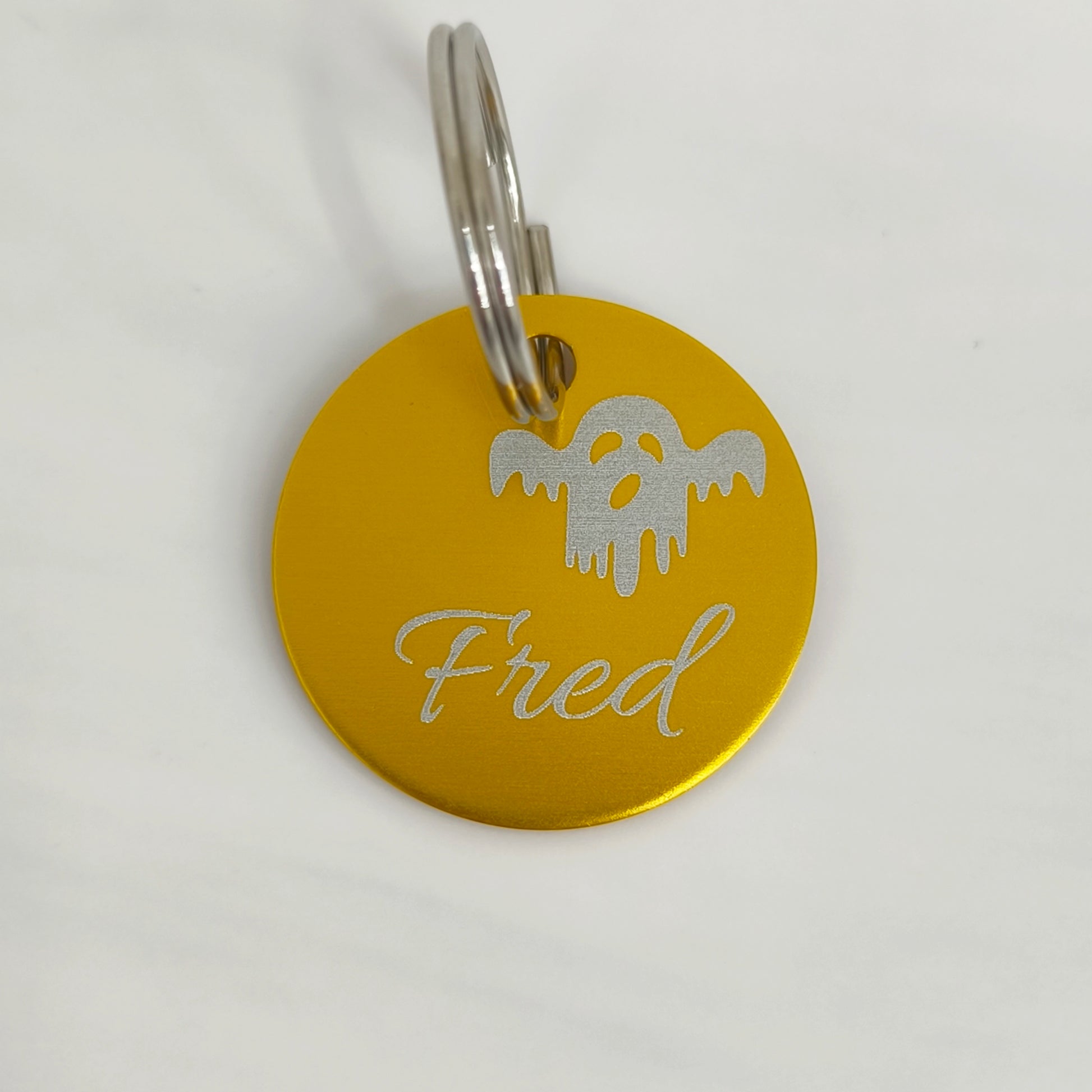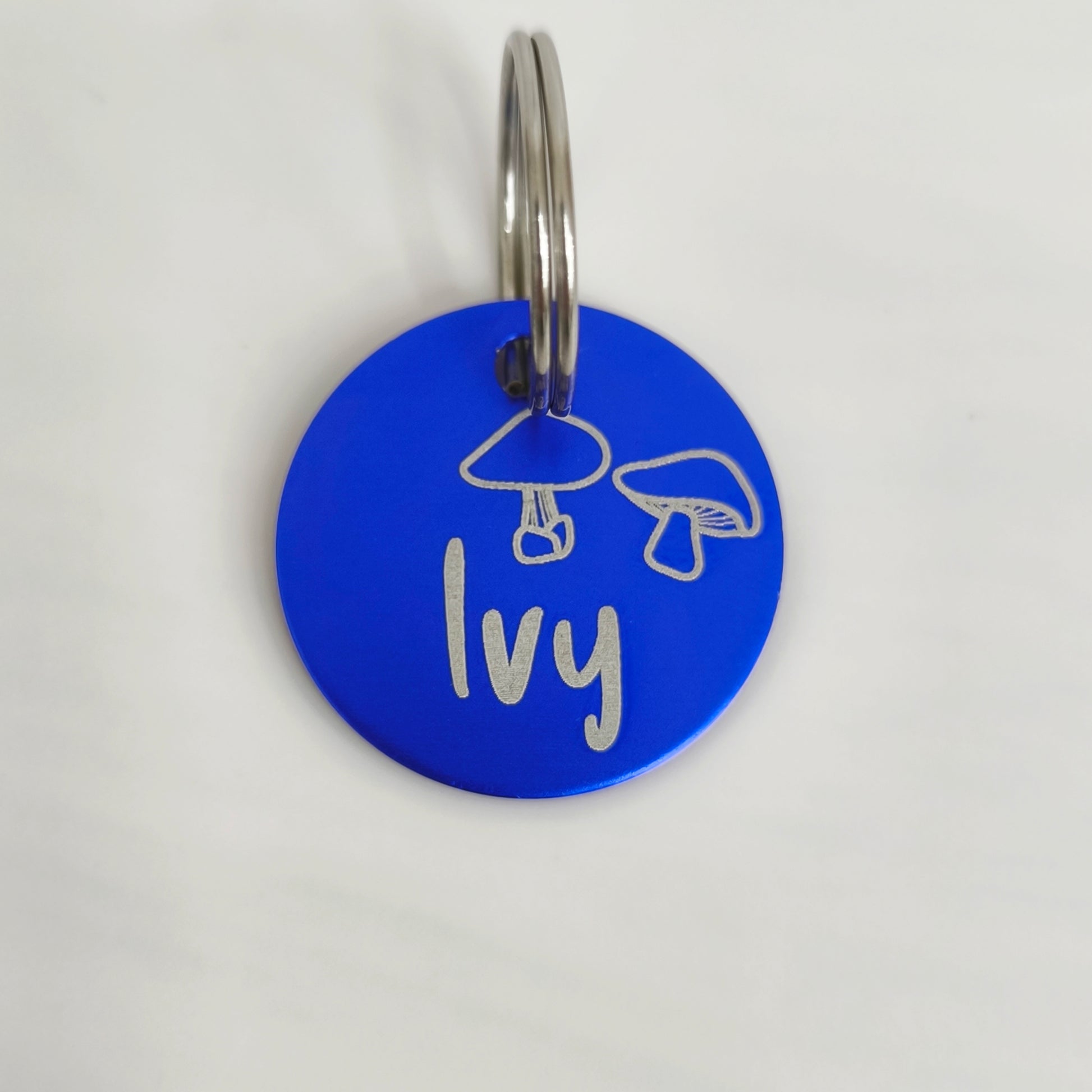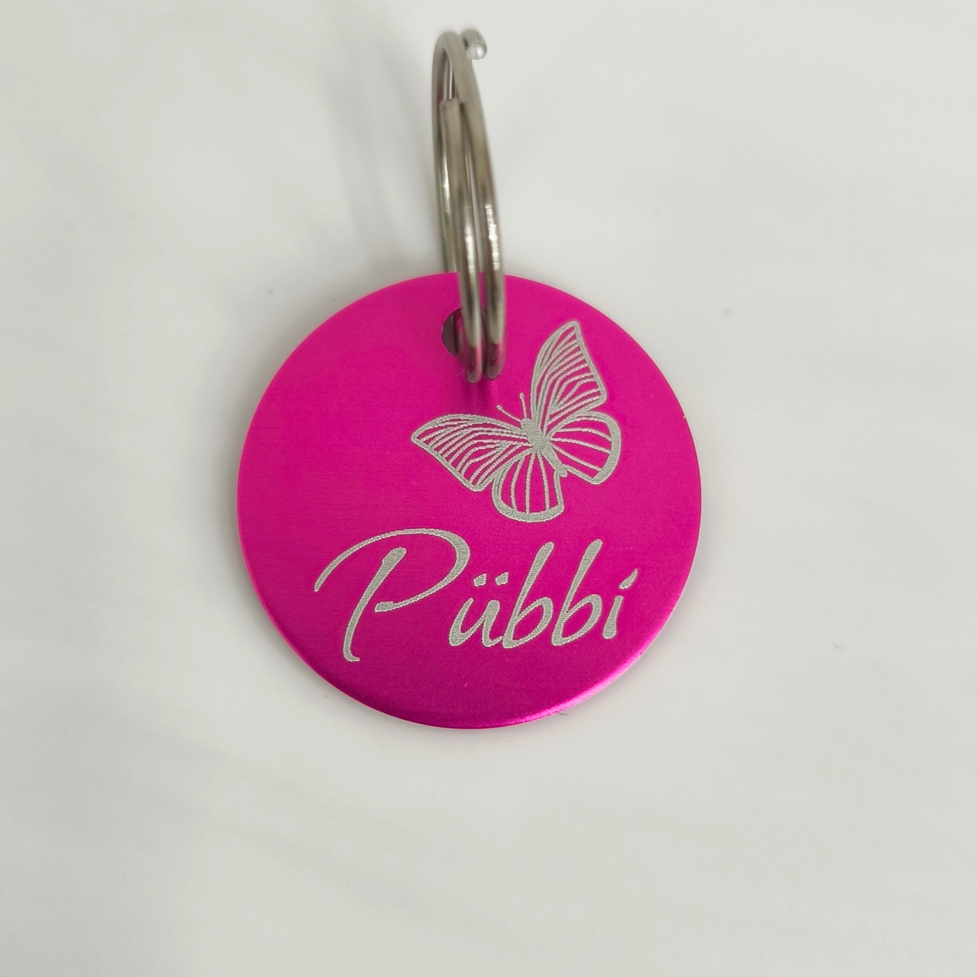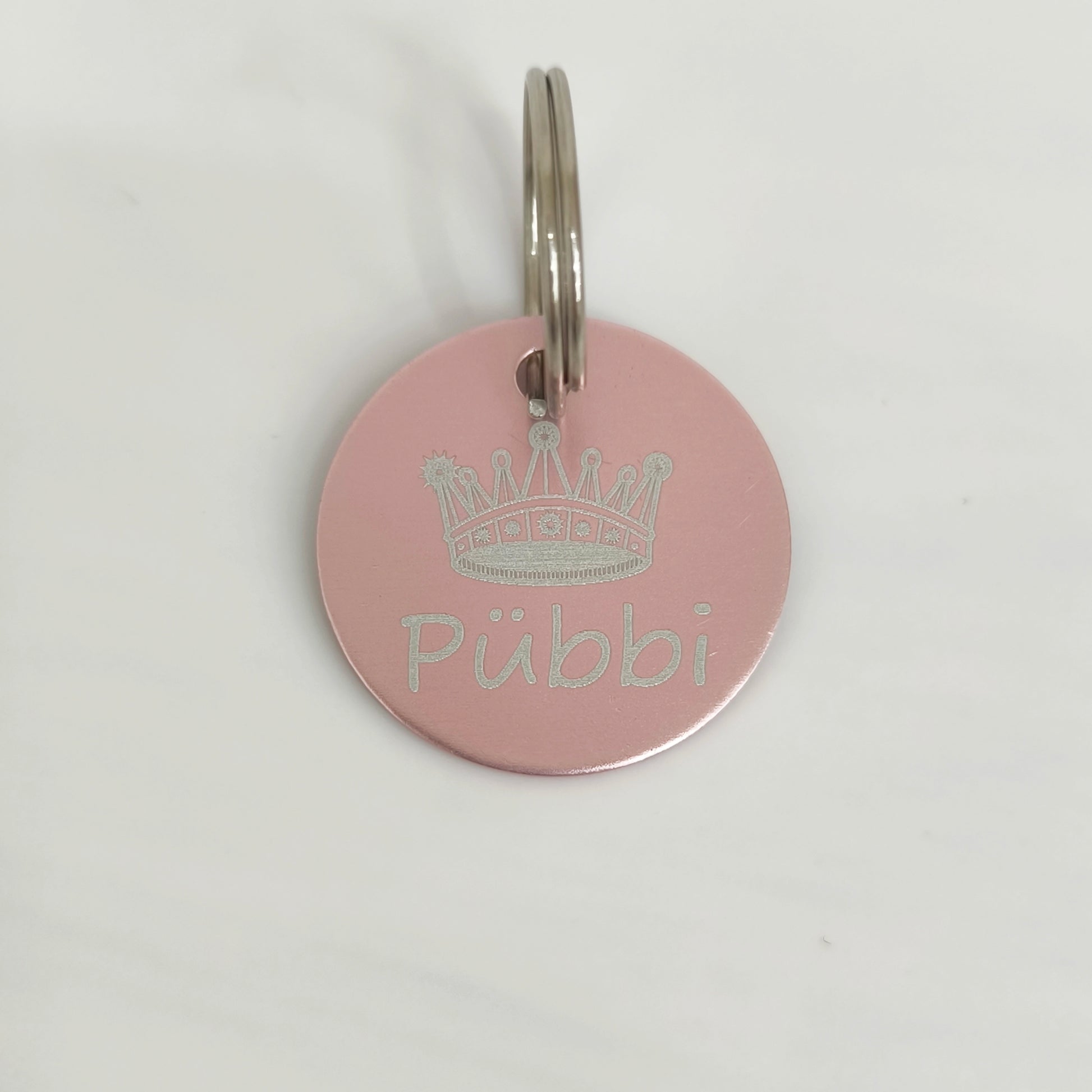 Unsere Florale Hundemarke graviert verschiedene Farben Rund ist 25mm groß.