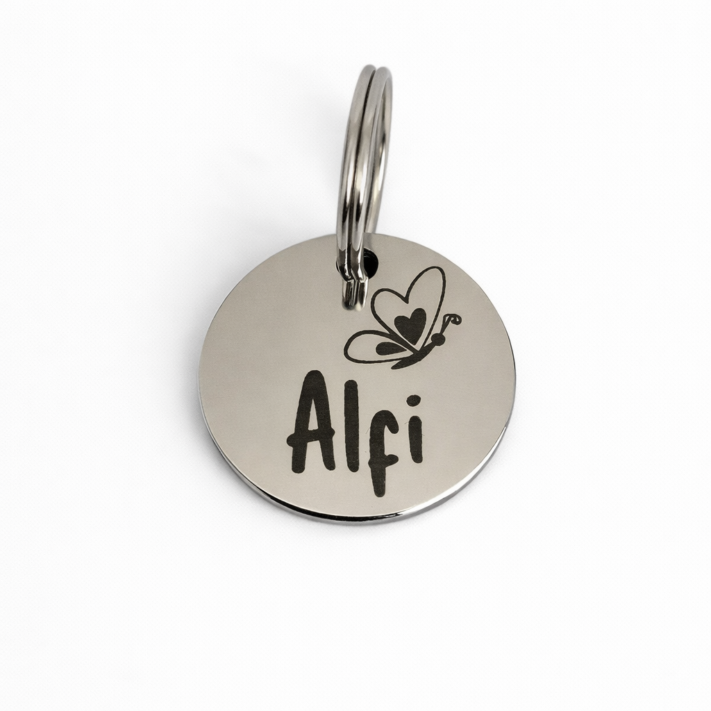 - Sanfte Reinigung: Verwende lauwarmes Wasser und ein weiches Tuch, um Schmutz zu entfernen. Danach gründlich abspülen und trocknen lassen. Verwende keine scharfen Chemikalien zum reinigen der Hundemarke.