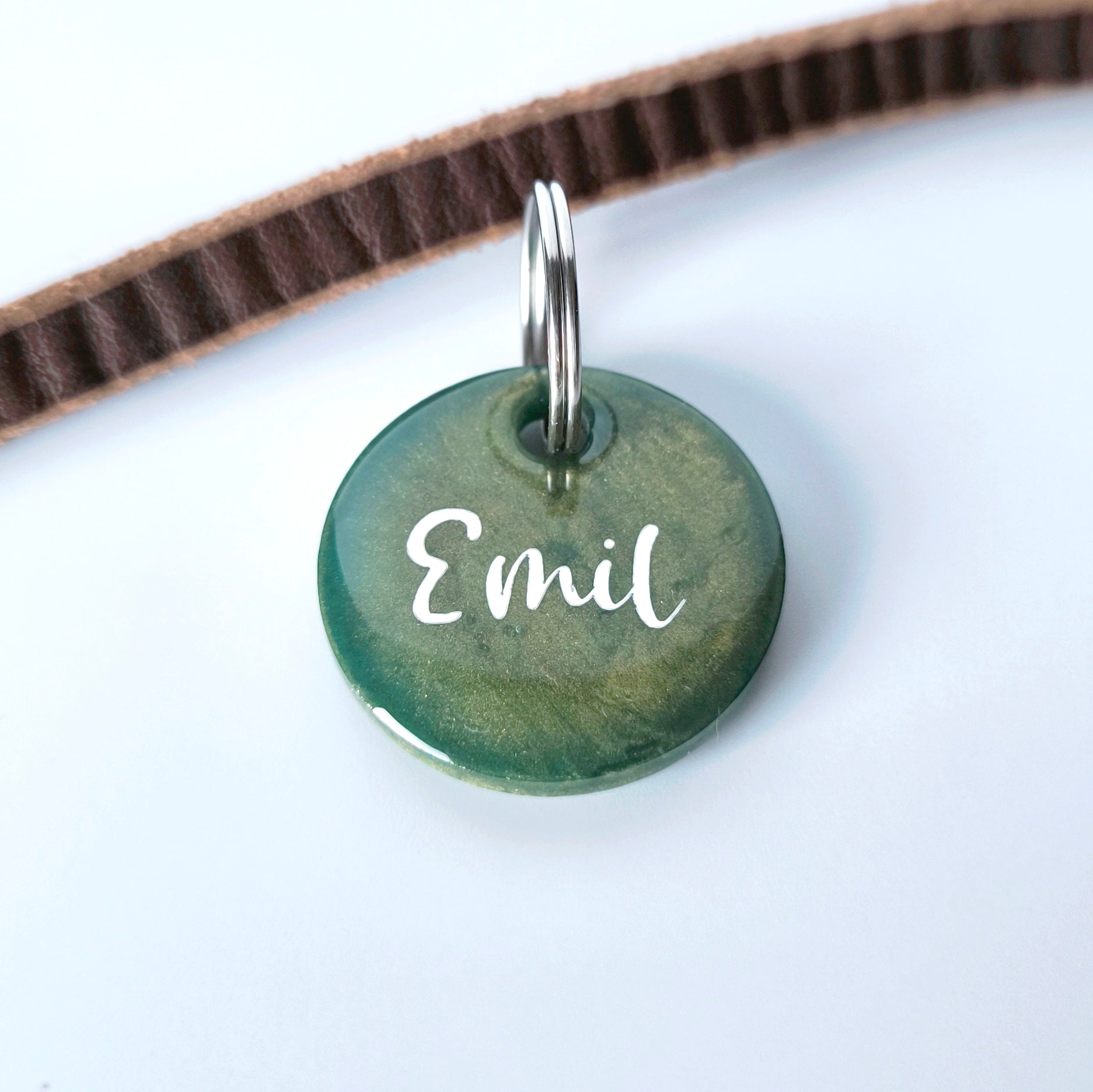 Unsere personalisierte Hundemarke aus Epoxidharz zeichnet sich durch ihre Langlebigkeit und Leichtigkeit aus. Im Gegensatz zu Hundemarken mit Gravur erzeugt sie kein Klappergeräusch und ist robust gegen Kratzer sowie Abnutzung, wodurch die Lesbarkeit dauerhaft erhalten bleibt. Der Name des Hundes sowie die Telefonnummer des Besitzers können auf dem Namensanhänger eingelassen werden, was im Falle eines Verlusts eine zügige Rückführung deines Lieblings gewährleistet. Bereits über 500 Hunde vertrauen auf unsere Qualität und Exklusivität, werde jetzt ein Teil davon.