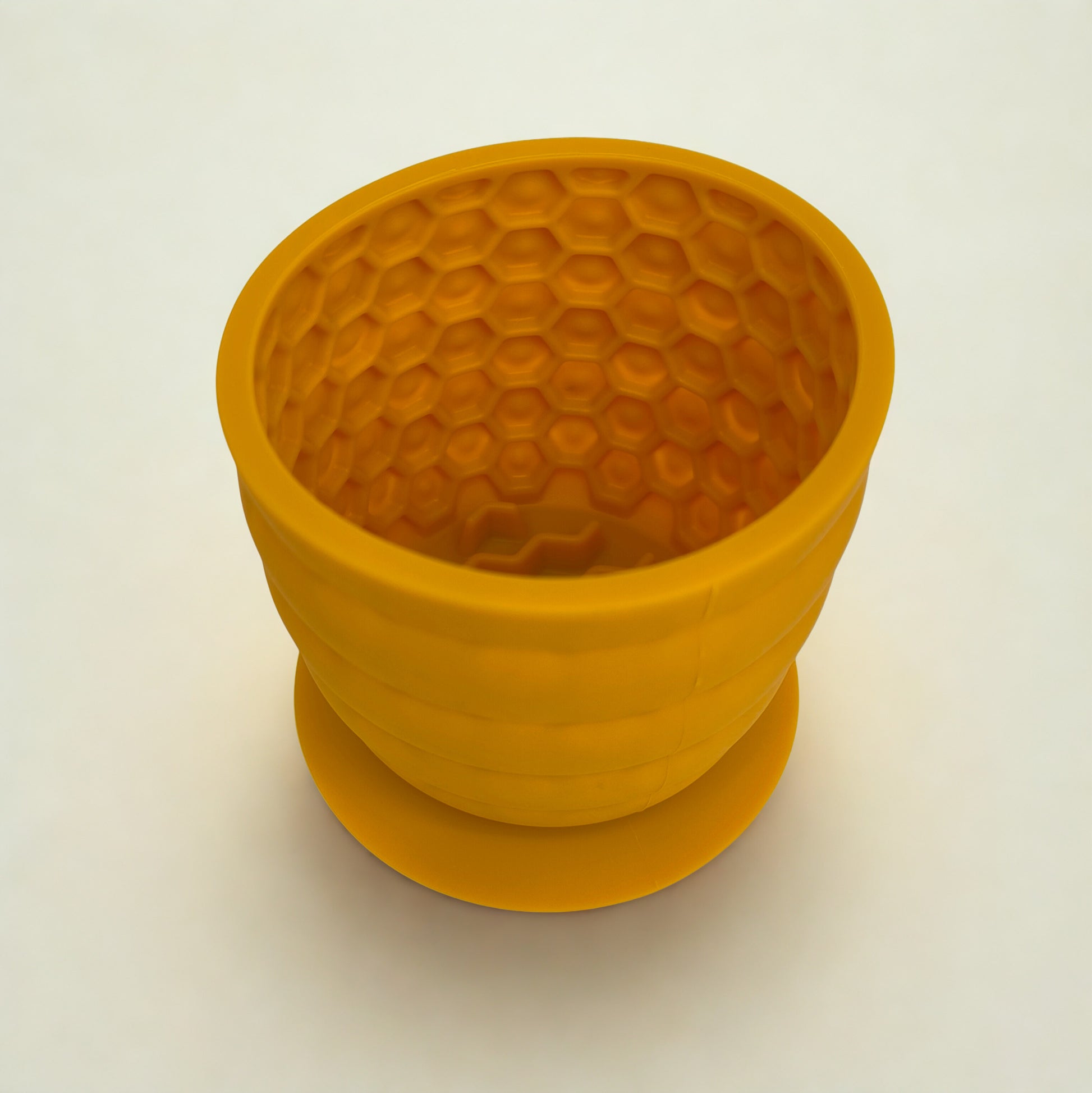 Toller Leckpott für kleine und mittelgroße Hunde. Der Leckpott hat auf der Unterseite einen Saugnapf um ein rutschen auf glatten Boden zu verhindert. Außerdem kann die Leckpott so beispielsweise an die Badewanne "geklebt" werden, damit der Hund während beim Baden entspannen kann.