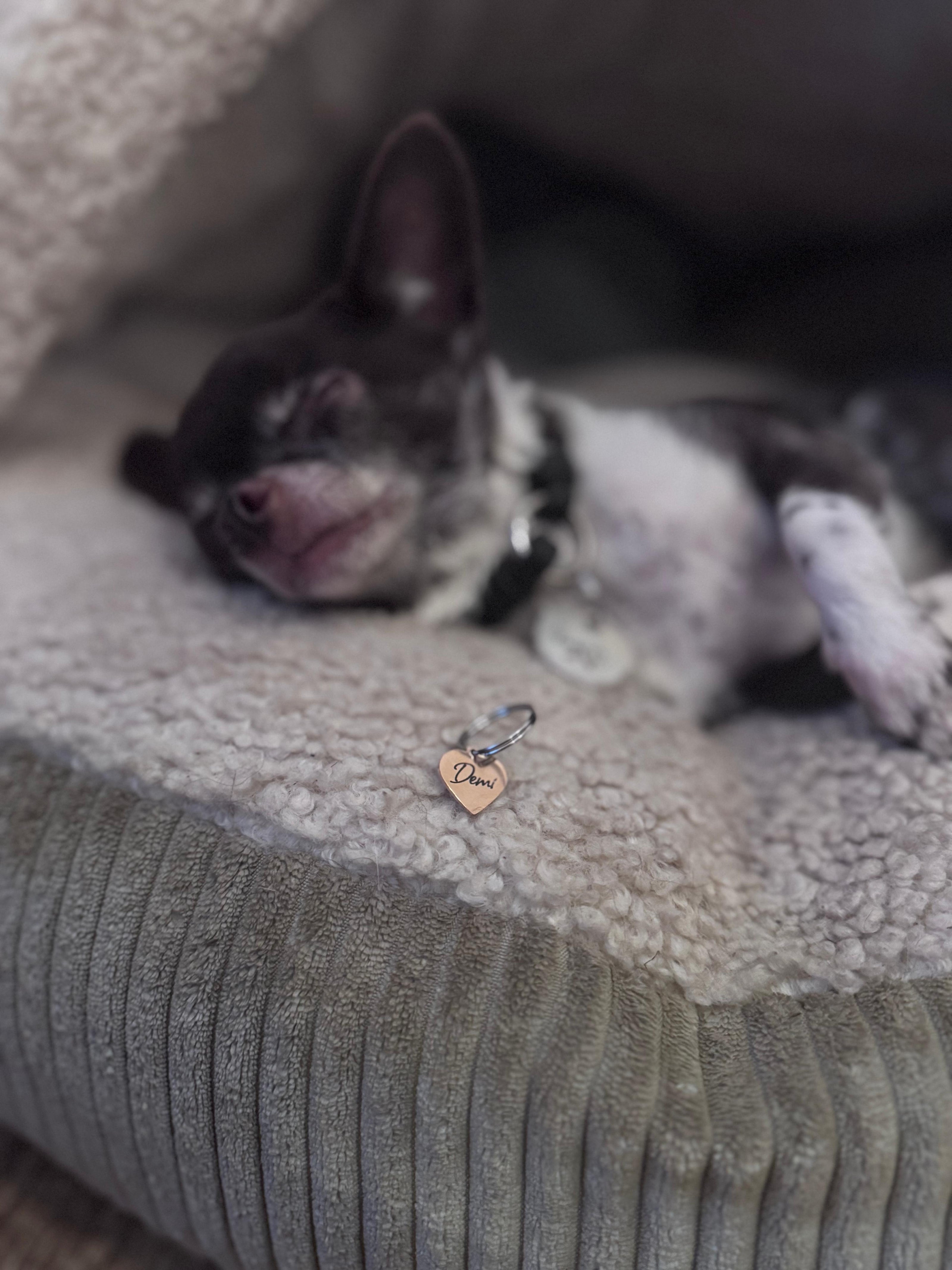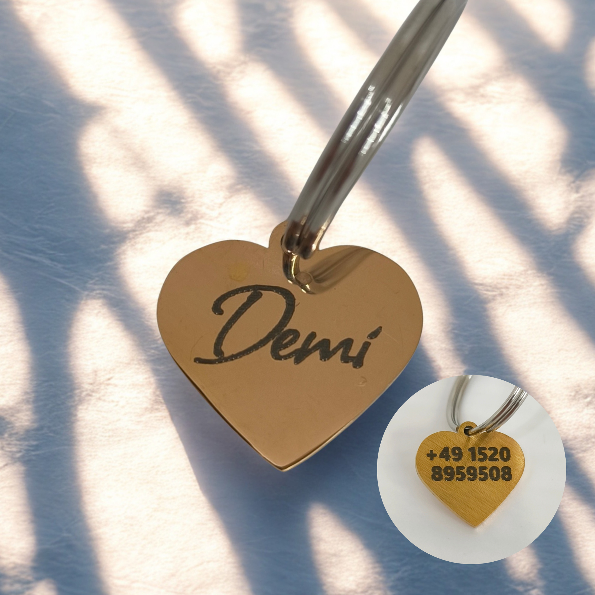 Unsere Mikro Hundemarke personalisiert in Herzform ist nur 15mm groß.