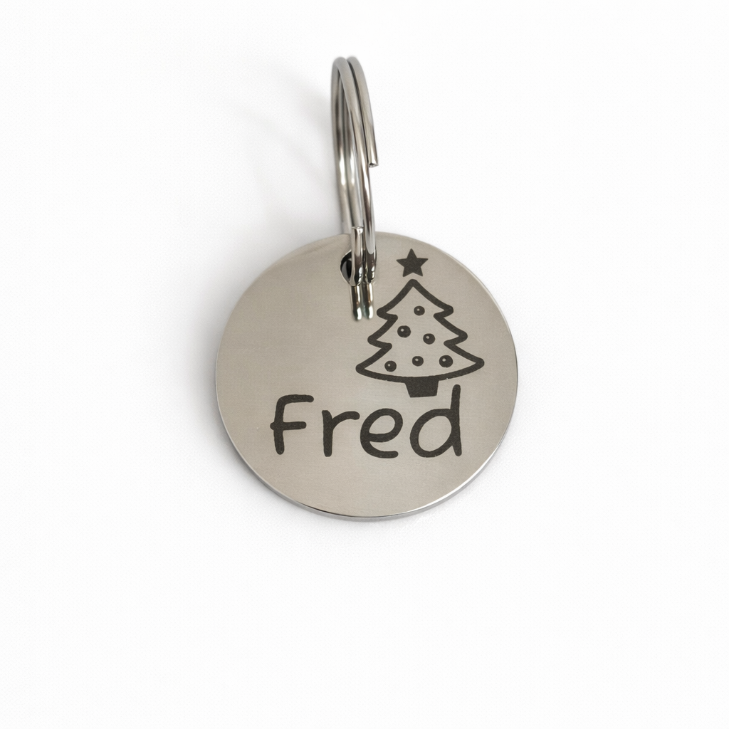Unsere Weihnachts Hundemarke graviert verschiedene Farben Rund ist 25mm groß.